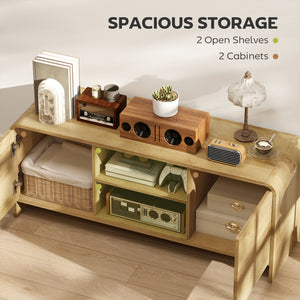 TV Stand for up to 55 Inch TV, Nordic Entertainment Center with 2 Cabinets and 2 Open Shelves for Living Room, Natural Wood