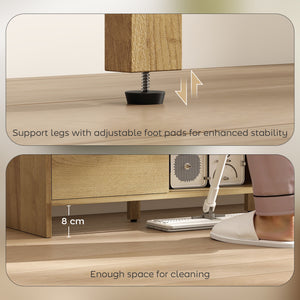 TV Stand for up to 65 Inch TV, Nordic Entertainment Center with 2 Cabinets and 2 Open Shelves for Living Room, Natural