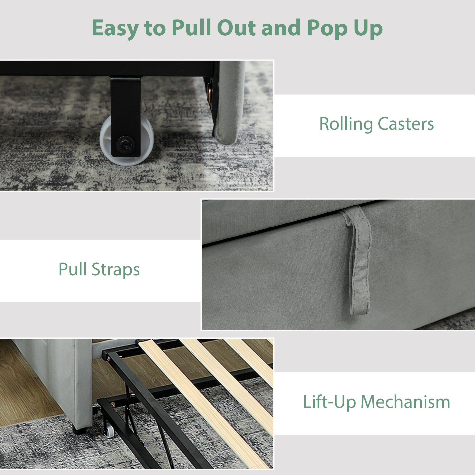 - • Pop-up trundle lifts to form a spacious king-size sleeping surface