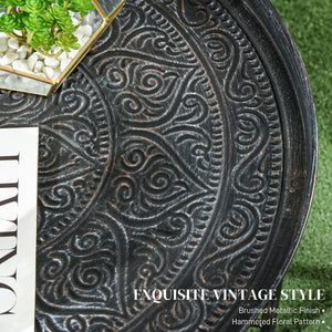 Dive into a world of elegance with the Homivas vintage coffee table, where a handmade brushed metallic finish and a hammered floral pattern meet to add a splash of artistry to your living room. This round table, not just a center table but a conversation starter, stands on a painted metal frame adorned with reinforced crossbars, ensuring stability while adjustable foot pads promise level perfection on any surface.