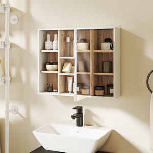 Wall-Mounted Bathroom Medicine Cabinet with Mirror, Over Toilet Bathroom Vanity Cabinet White & Oak
