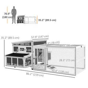 Wooden Chicken Coop, Rabbit Hutch with Large Run, Outdoor Poultry Cage with Nesting Box, Tray, Windows, Dark Grey