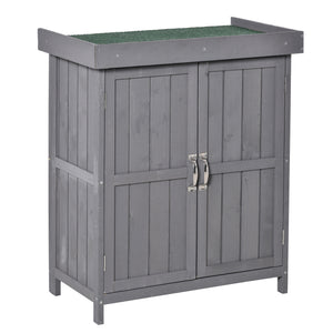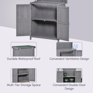 Wooden Garden Tool Storage Shed Kit with Hinged Roof, 2-Tier Shelves and Double Doors, 74x43x88cm, Dark Grey