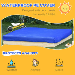 Wooden Kids Sandbox with Foldable Bench Seat, 2 Plastic Boxes, Bottom Liner, Storage Space for Garden, Backyard